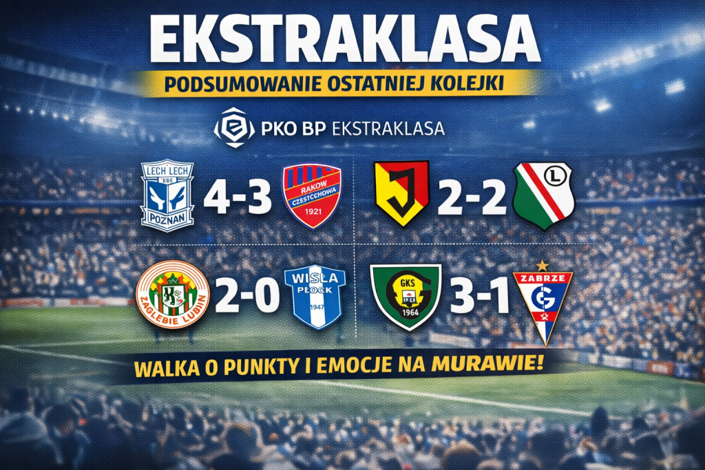 - kolejka PKO BP Ekstraklasy rozegrana w dniach 27 lutego – 2 marca przyniosła kibicom wszystko, czego można oczekiwać od ligowego weekendu: siedmiobramkowy thriller w Poznaniu, emocjonujące derby Trójmiasta, przerwany mecz w Krakowie oraz istotne rozstrzygnięcia w kontekście walki o czołówkę i utrzymanie. Padło łącznie 26 bramek, a kilka spotkań rozstrzygało się w końcówkach, co tylko potwierdza, jak wyrównana i nieprzewidywalna jest obecnie liga.
